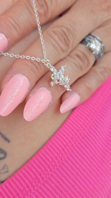 "The necklace feels high quality. The crystals on the heart are super sparkly and I love the way the crown looks around it. Obsessed!"